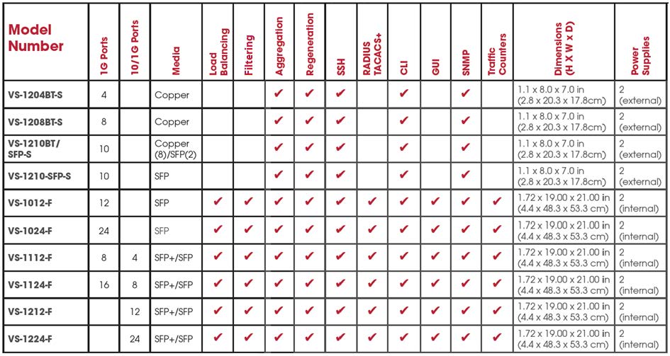 | VS-1210SFP-S Network Packet Broker | 10 | Gigabit | VS-1210SFP-S Data Sheet |